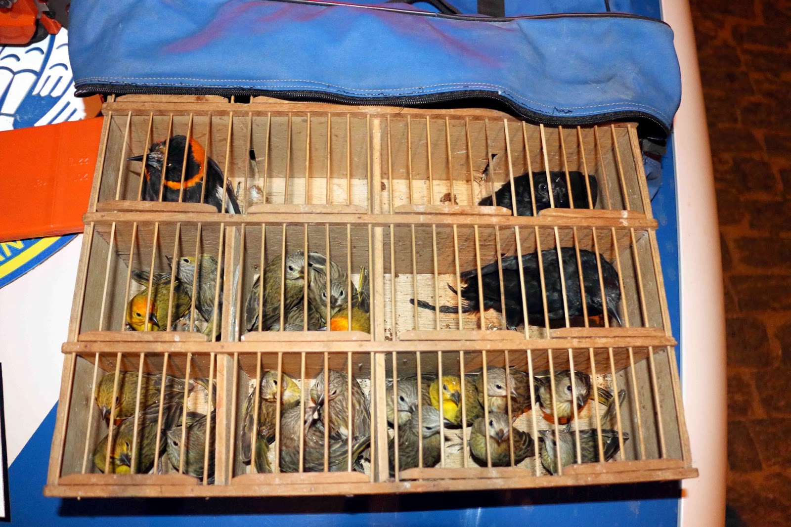 “A Polícia Ambiental prendeu um homem de 56 anos que transportava pássaros silvestres, em Guaçui, no Sul do Espírito Santo. Ele estava com 25 aves dentro de um ônibus, que seguia para o Rio de Janeiro, na noite desta quarta-feira (5). O passageiro preso foi levado para a delegacia do município de Jerônimo Monteiro, no Sul do estado. Ele pode pegar de seis meses a um ano de prisão.