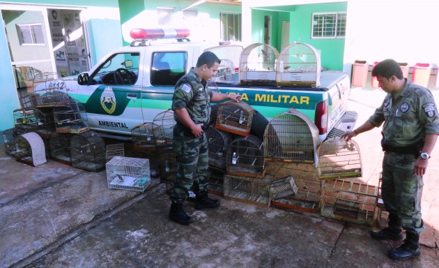“Vários pássaros silvestres em situação irregular foram encontrados por Policiais Militares Ambientais em Londrina. Denúncias anônimas foram feitas ao batalhão que designou policiais para o conjunto habitacional Maria Cecilia. Em três residências localizaram um total de trinta e um pássaros silvestres em cativeiro sendo que nenhum deles tinha a documentação regularizada para a sua criação em cativeiro, constatando a denuncia de manter os pássaros apreendidos de forma ilegal.