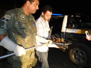 De acordo com os guardas ambientais, a denúncia partiu do Ministério Público e teve o apoio da Defesa Civil de Varre-Sai. Foram apreendidos cinco jabutis, dois macacos pregos e dois quatis.”