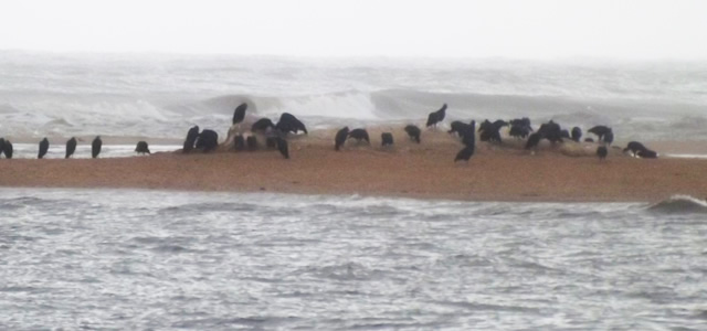 Urubus comendo os restos da baleia