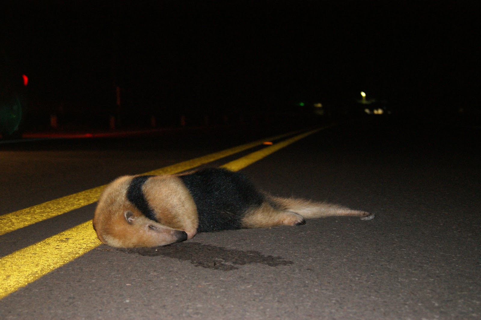 Tamanduá-mirim atropeladona BR-262, no Pantanal (MS)
