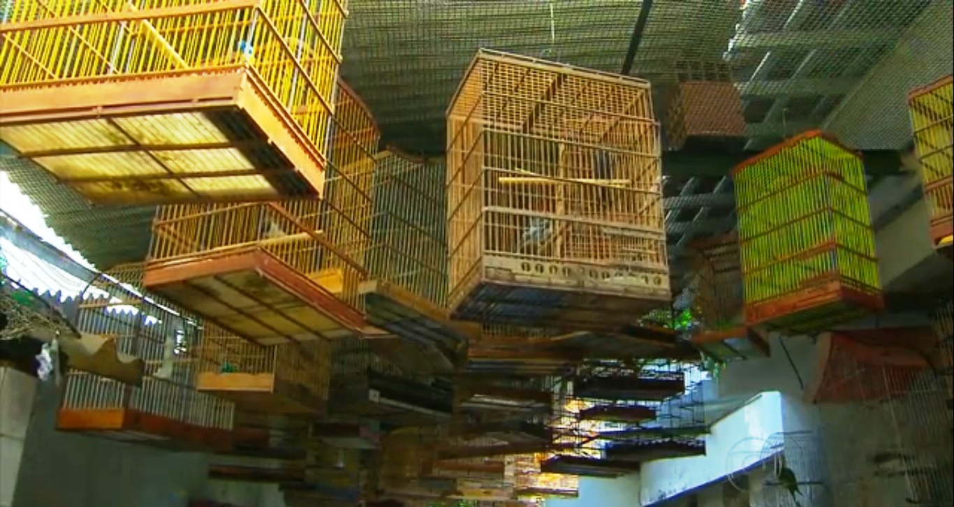 Animais ficam amontoados em gaiolas impróprias. Estresse e doenças