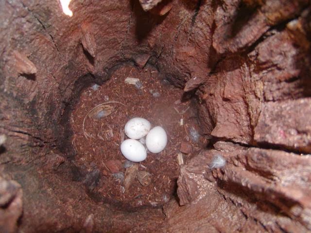 …na retirada de ovos de ninhos para o comércio de papagaios filhotes.