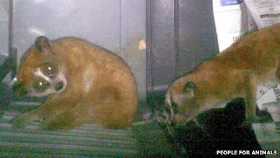 Eles estavam em trânsito de Bangkok para Dubai, com escala em Nova Déli, quando foram abordados pelas autoridades do aeroporto internacional Indira Gandhi. Em suas cuecas, eles traziam escondidos dois lóris – primatas de cerca de 25 cm de comprimento e olhos grandes, típicos da Índia e do Sri Lanka.” – texto da matéria “Homens são presos tentando embarcar com animais na cueca”, publicada em 11 de setembro de 2012 pelo portal G1