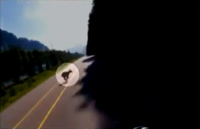 Um bom exemplo do que o excesso de velocidade e a desatenção de motoristas pode causar foi filmado por um motociclista que atropelou um urso no Canadá.