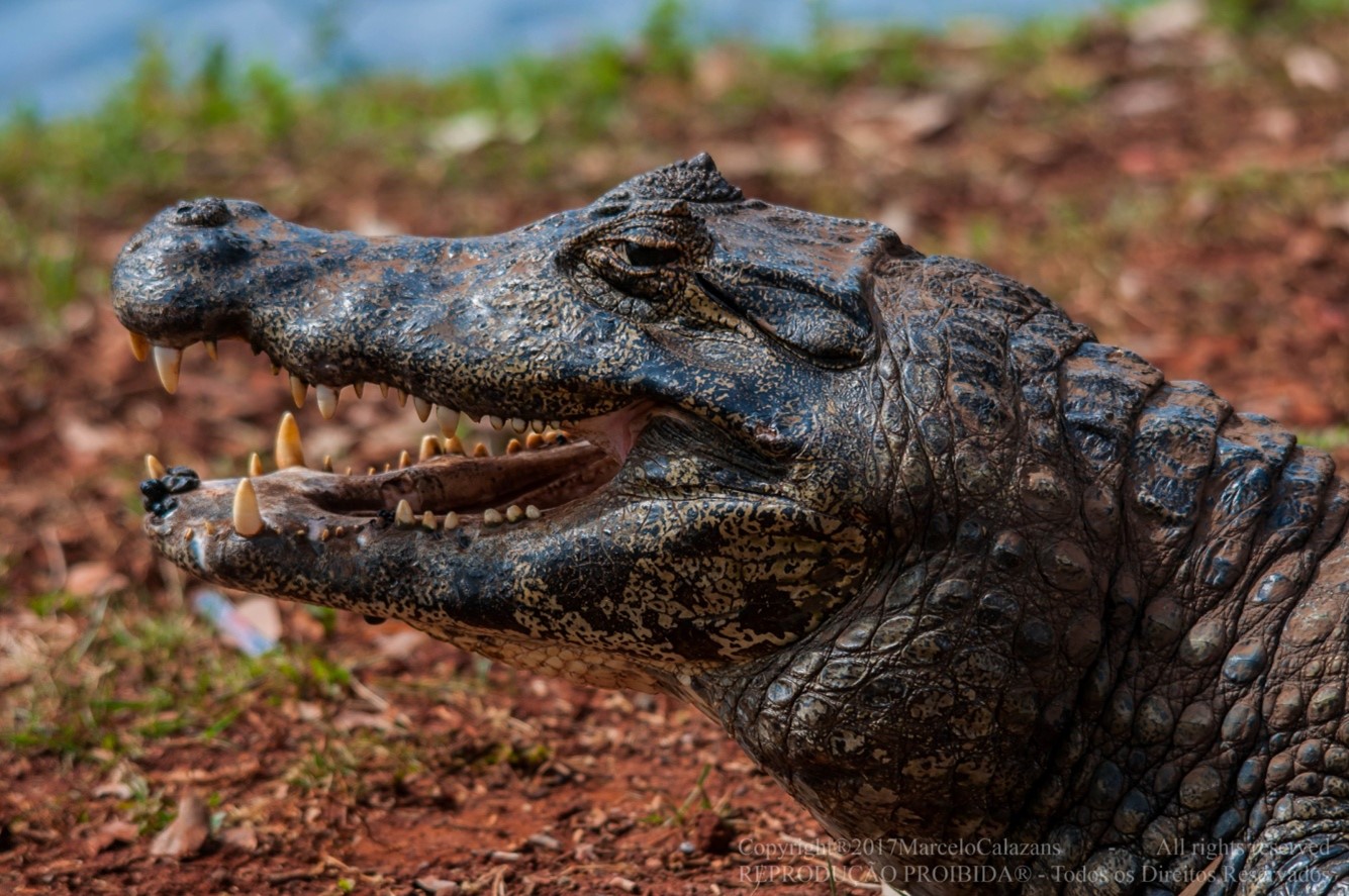 Alguns dados interessantes da espécie: o jacaré-do-pantanal, ou jacaré-do-paraguai, habita a parte central da América do Sul, incluindo o norte da Argentina, o sul da Bolívia e Centro-Oeste do Brasil, especialmente o Pantanal e rios do Paraguai. Mede entre dois a três metros de comprimento e seu padrão de coloração é bastante variado, sendo o dorso particularmente escuro com faixas transversais amarelas, principalmente na região da cauda. Mesmo com a boca fechada, deixa ver muitos dentes, o que o faz ser chamado também de jacaré-piranha.
