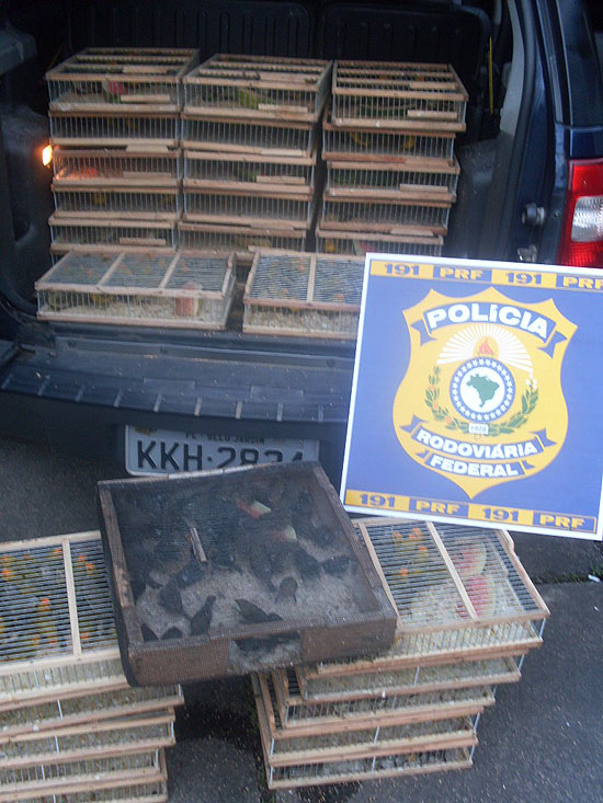 “A Polícia Rodoviária Federal apreendeu ontem 730 pássaros silvestres que eram transportados dentro de um EcoSport, na rodovia BR-101. Essa é a maior apreensão desse tipo de animal realizada nas rodovias da Bahia desde o início do ano.