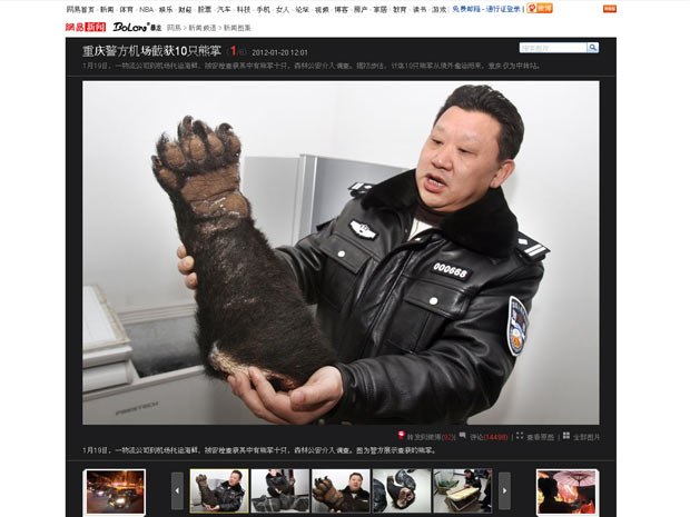 – texto da matéria “Polícia chinesa apreende 10 patas de urso contrabandeadas”, publicada em 6 de fevereiro de 2012 pelo portal G1