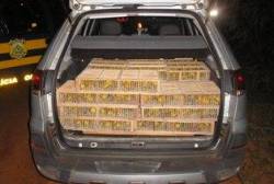 Gaiolas no porta-malas do Palio no momento da apreensão