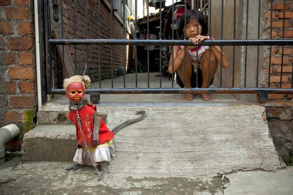 fonte de renda, a exploração de animais como entretenimento é comum. Em 1º de novembro de 2013, o Fauna News publicou “Reflexão para o fim de semana: crueldade extrema alimentando o tráfico”, sobre o chamado “topeng monyet”, prática em que macacos são forçados a usar máscaras ou realizar truques com suas mãos em Jacarta, Indonésia.