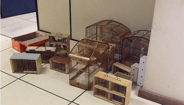 “Sete pessoas foram detidas e um menor apreendido enquanto faziam comércio ilegal de animais silvestres numa feira livre na Praça São Francisco Xavier, na Tijuca, Zona Norte do Rio, na manhã deste domingo (27). Segundo policiais militares da Unidade de Polícia Ambiental Móvel (UPAm Móvel), 33 pássaros foram apreendidos, dentre curiós, coleiros, canários-da-terra, tizius, tico-ticos, pixoxós e trinca-ferros.