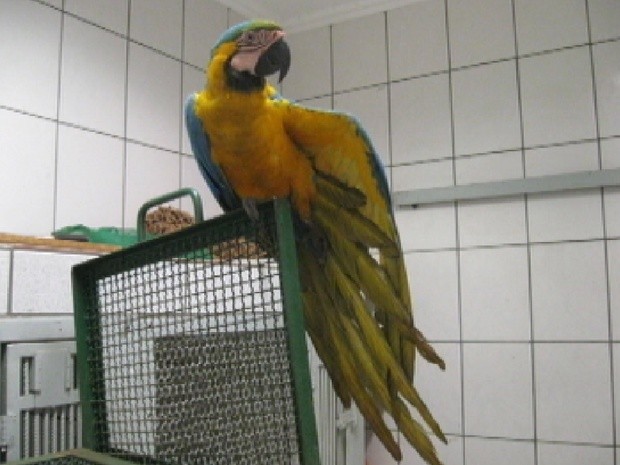 Uma arara da espécie canindé foi encontrada em um cativeiro em Tanabi (SP) nesta quarta-feira (1º). A ave, que é de uma espécie em extinção, é muito bonita, está bem de saúde e não tem ferimentos.
