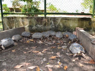 “Dez jabutis adultos da espécie Geochelone carboraria foram entregues nesta quinta-feira (17) por uma moradora no Bosque dos Papagaios, em Boa Vista. Os animais são considerados silvestres e estão em risco de extinção. Sua criação em cativeiro é considerada crime ambiental.