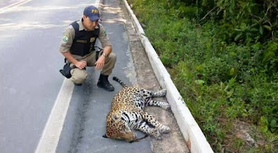 “Policiais Rodoviários Federais encontraram, na tarde da última terça-feira (10), uma onça-pintada atropelada no quilômetro 62 da BR 174 (Manaus – Boa Vista-RR). O animal foi encaminhado para o Instituto Brasileiro de Meio Ambiente e dos Recursos Naturais (Ibama).