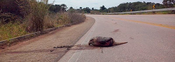 “Desta vez a vítima de trânsito na BR-359 foi um tatu Canastra, um dos maiores tatu do mundo segundo os ambientalistas.