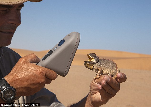 Microchips de identificação individual estão sendo introduzidos nos camaleões Namaqua do deserto da Namíbia para que seus movimentos possam ser rastreados, permitindo a alguém com o devido aparelho ‘ler’ o código do camaleão.